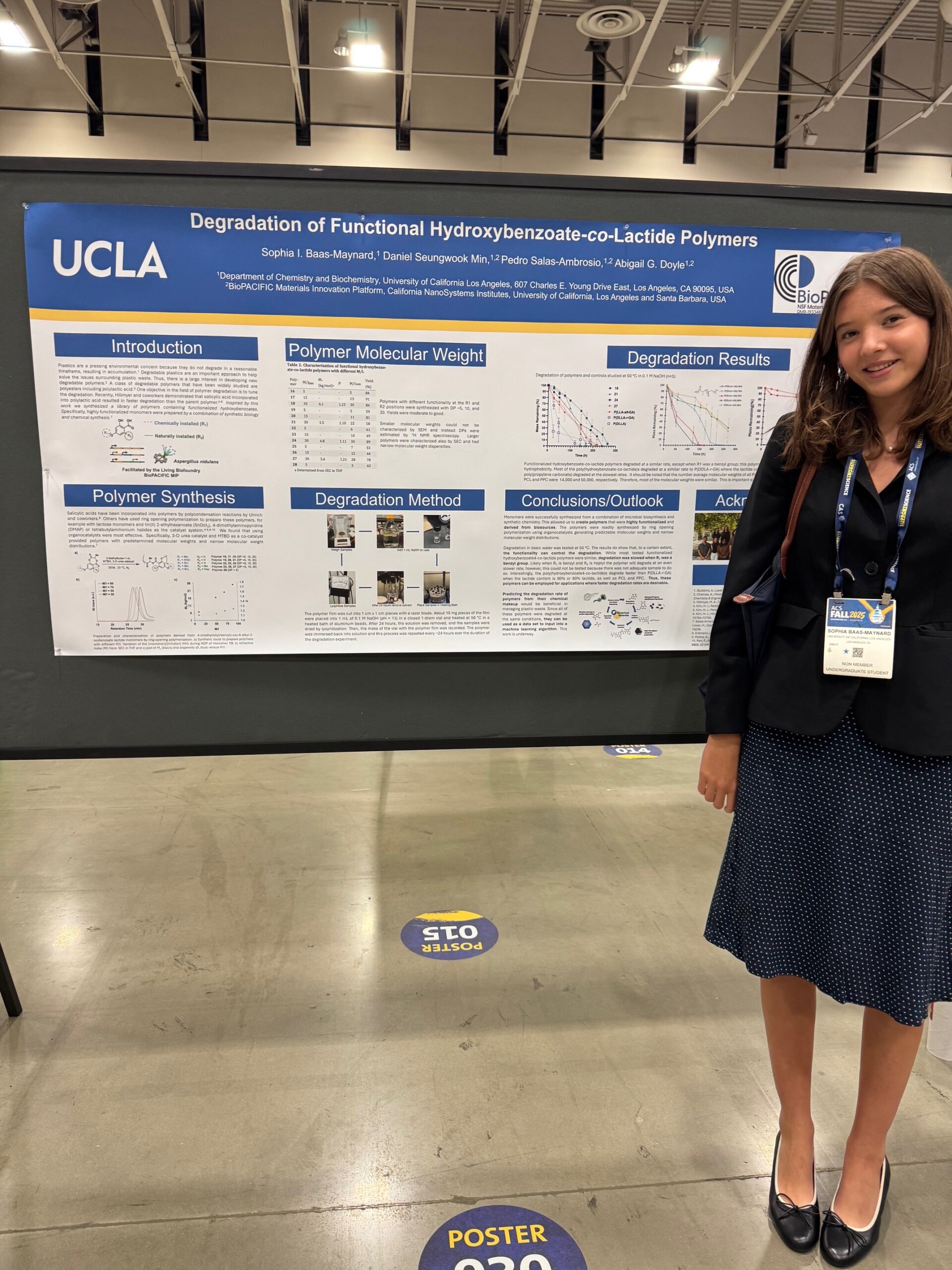 Congratulations to Sophia on a successful poster presentation at ACS Fall 2025 in Washington, DC! Sophia worked on the degradation of hydroxybenzoate-co-lactide polymers under guidance of Daniel and Pedro.