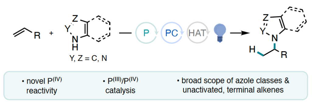 “Cooperative Phosphine-Photoredox Catalysis Enables N–H Activation of Azoles for Intermolecular Olefin Hydroamination” Sedillo, K.; Fan, F.; Knowles, R. R.; Doyle, A. G. J. Am. Chem. Soc., 2024, 146, 20349-20356. [DOI: 10.1021/jacs.4c05881] Link PDF